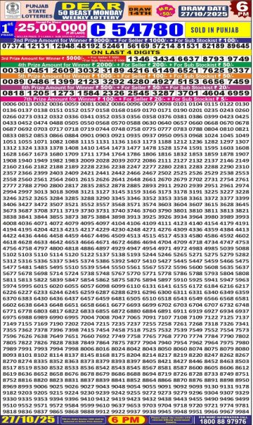 Punjab State Dear 50 Beast Monday Weekly Lottery 27-10-25