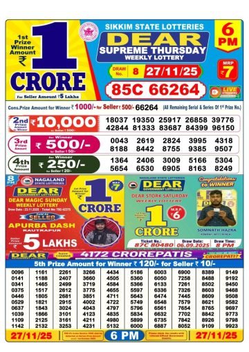 Dear Supreme Thursday Weekly Lottery 6pm Result 27-11-25