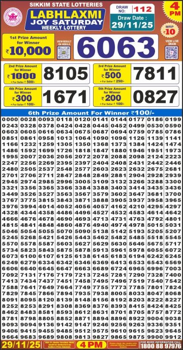 Labh Laxmi Joy Saturday Weekly Lottery 4pm Result 29-11-25