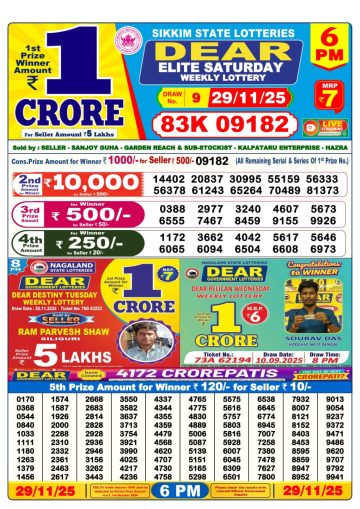 Dear Elite Saturday Weekly Lottery 6pm Result 29-11-25