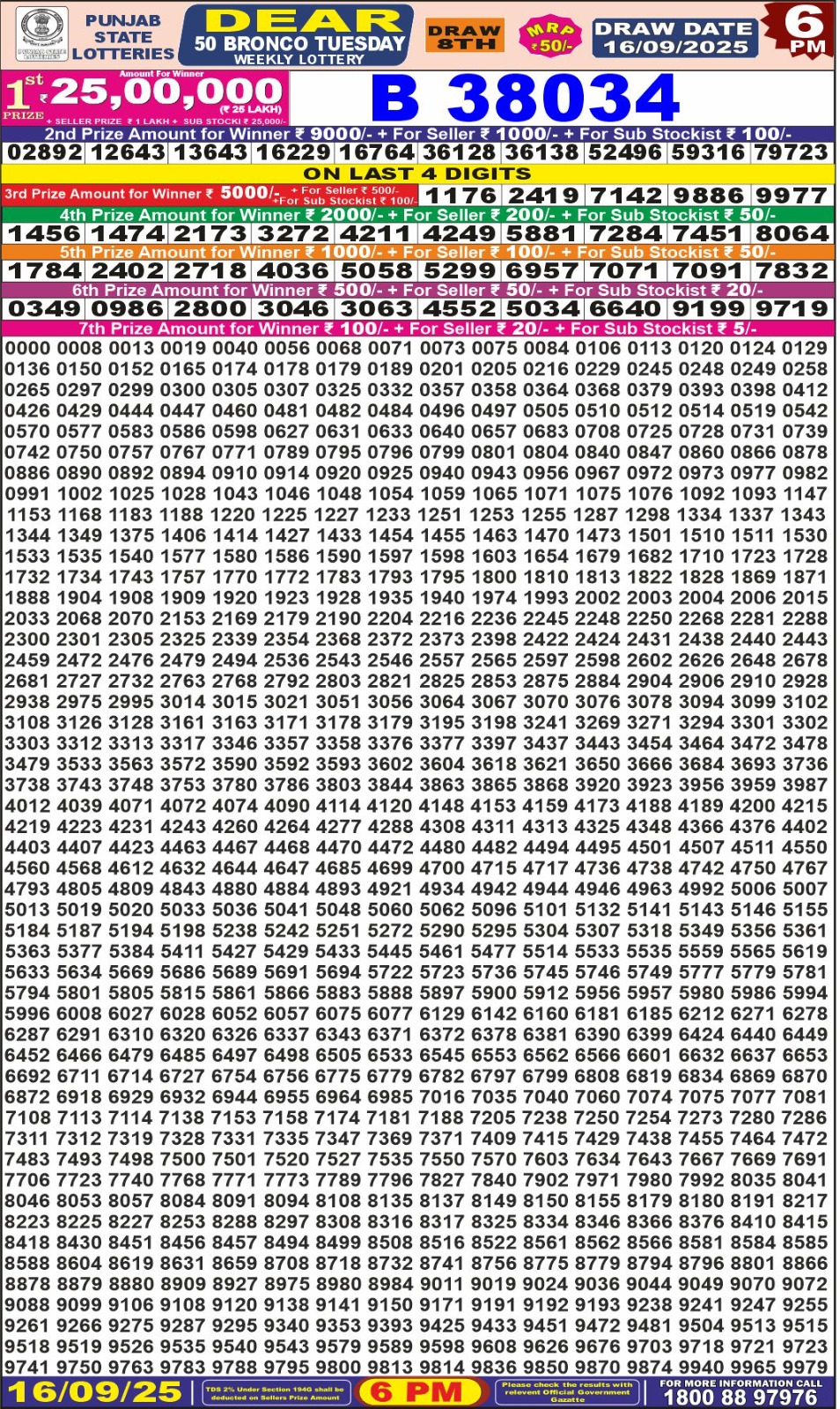 Punjab State Dear 50 Bronco 6 PM Result 16-09-25