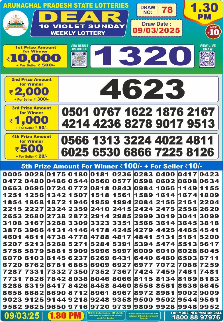 Dear 10 violet sunday weekly lottery 1:30 pm result 9-3-25