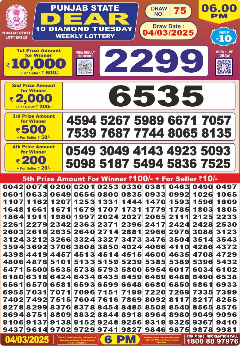 Punjab state dear 10 diamond 6 pm result 4-3-25