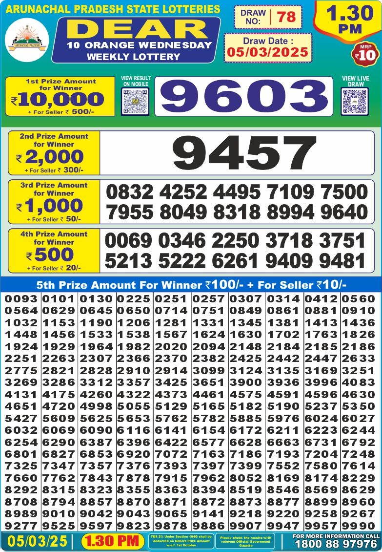 Dear 10 orange Wednesday weekly lottery 1:30 pm result 5-3-25