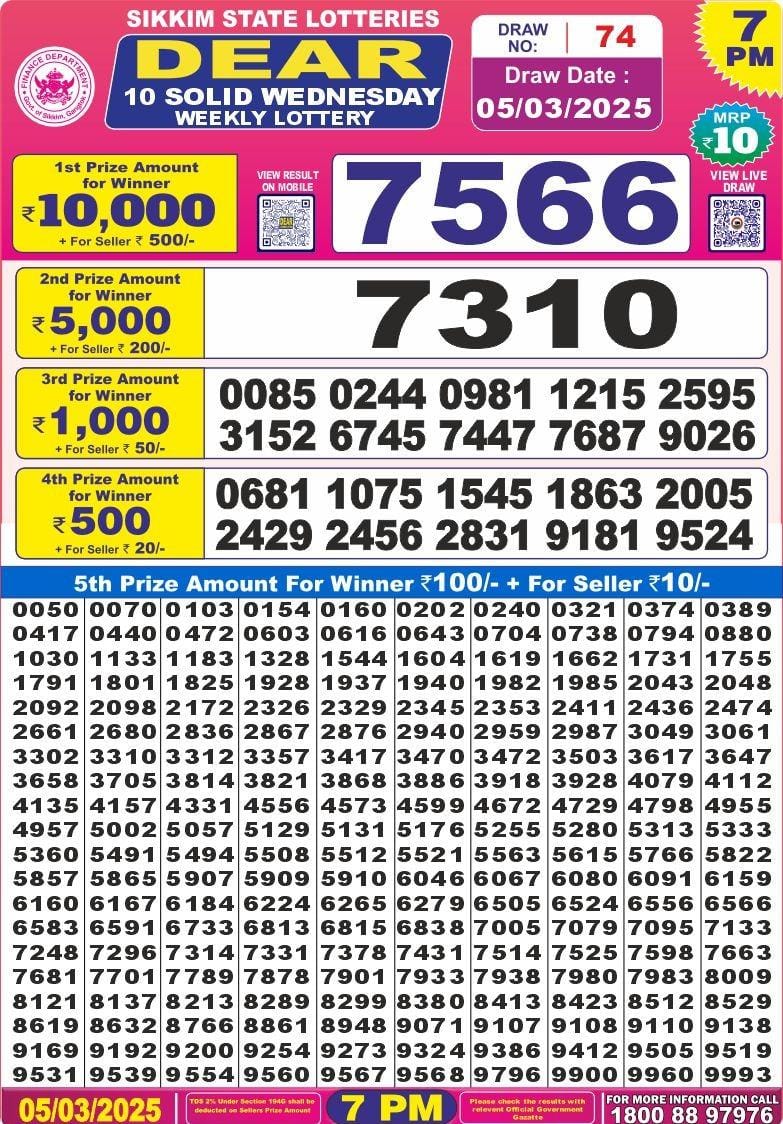 Dear 10 solid wednesday weekly lottery 7 pm result 5-3-25
