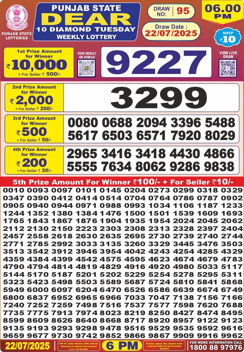 Punjab state dear 10 diamond 6 pm result 22-7-25