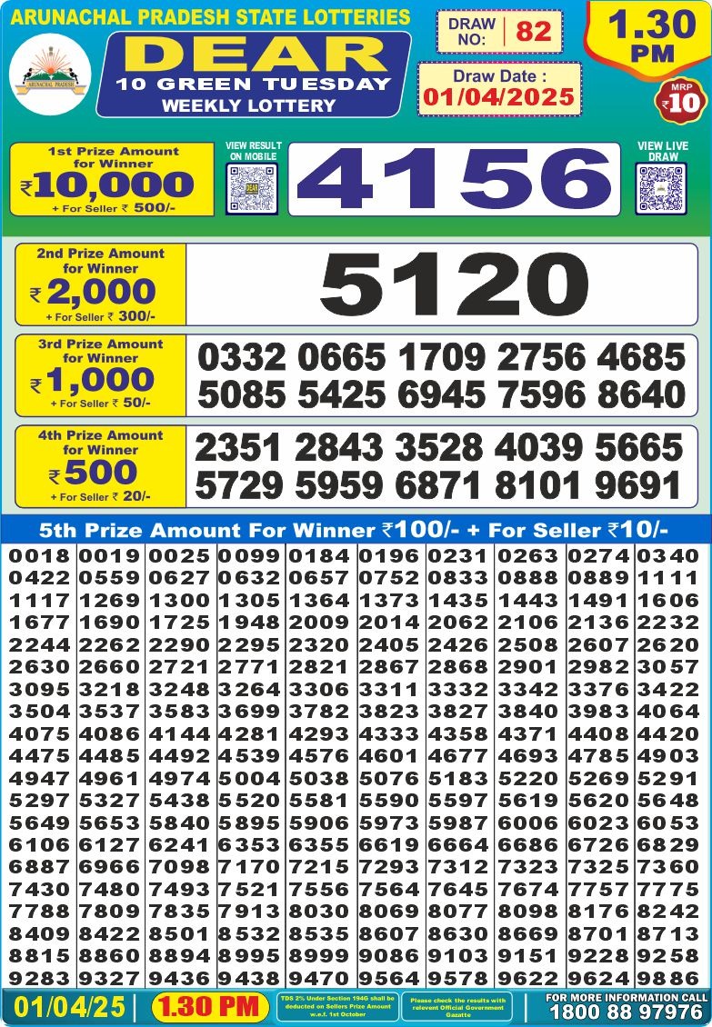 Dear 10 green tuesday weekly lottery 1:30 pm 1/4/25