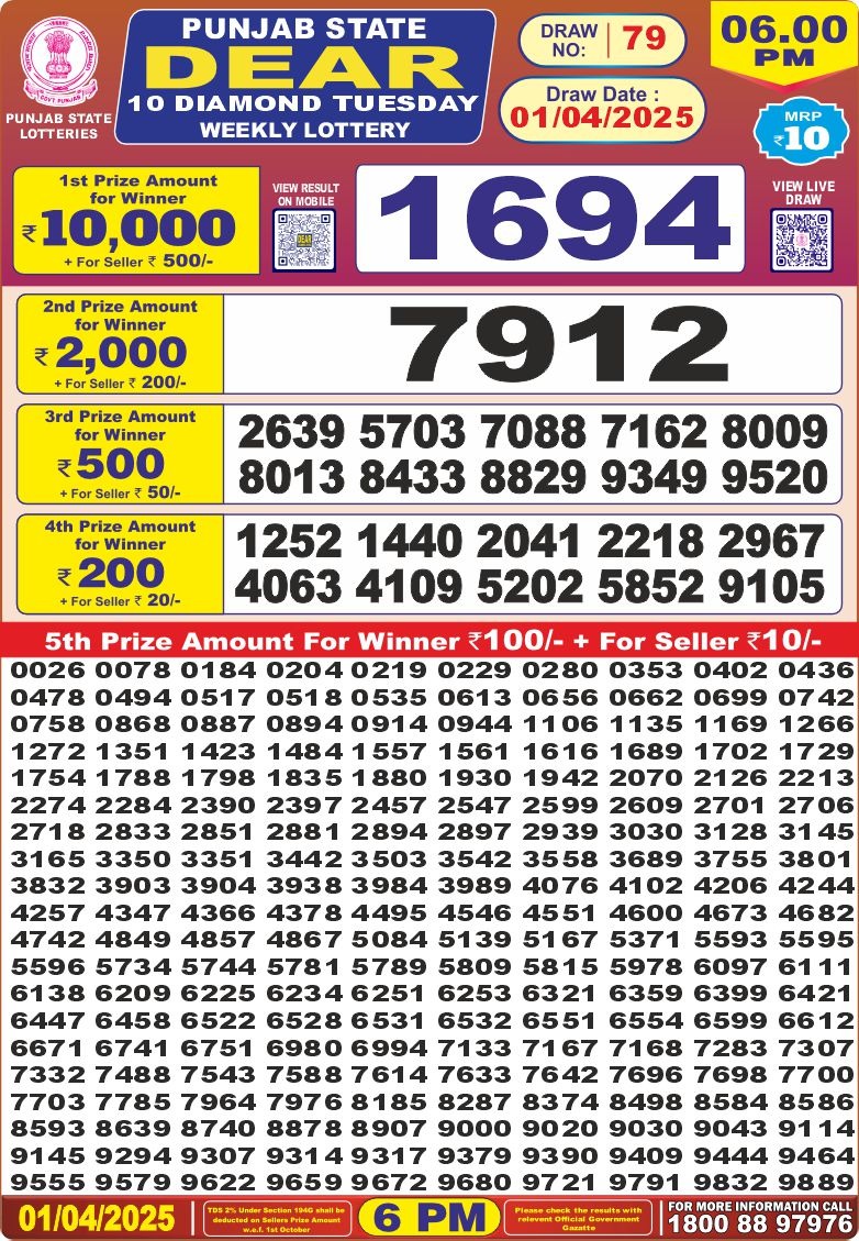 Punjab state dear 10 diamond 6 pm result 1/4/25