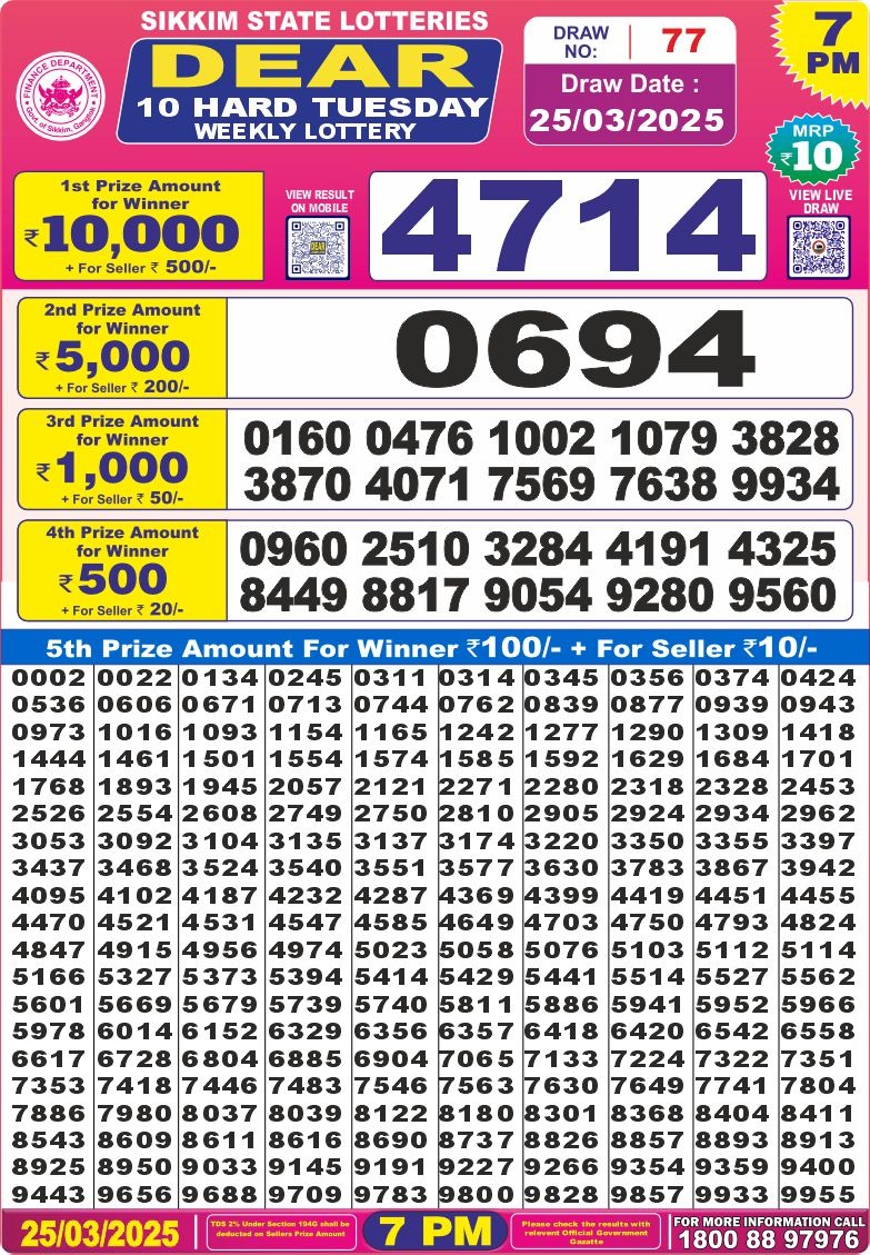 Dear 10 hard tuesday weekly lottery 7 pm result 25-5-25