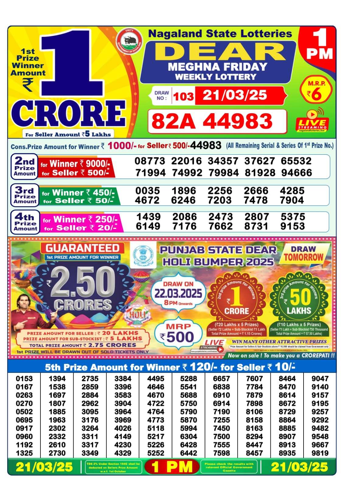 Dear meghna friday weekly lottery 1 pm result 21-3-25