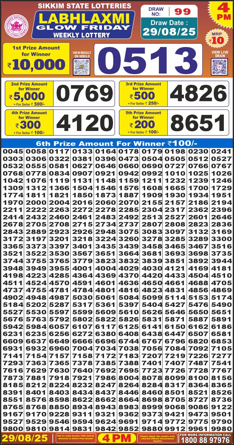 Labhlaxmi Glow Friday Weekly Lottery 4 PM Result 29-08-25