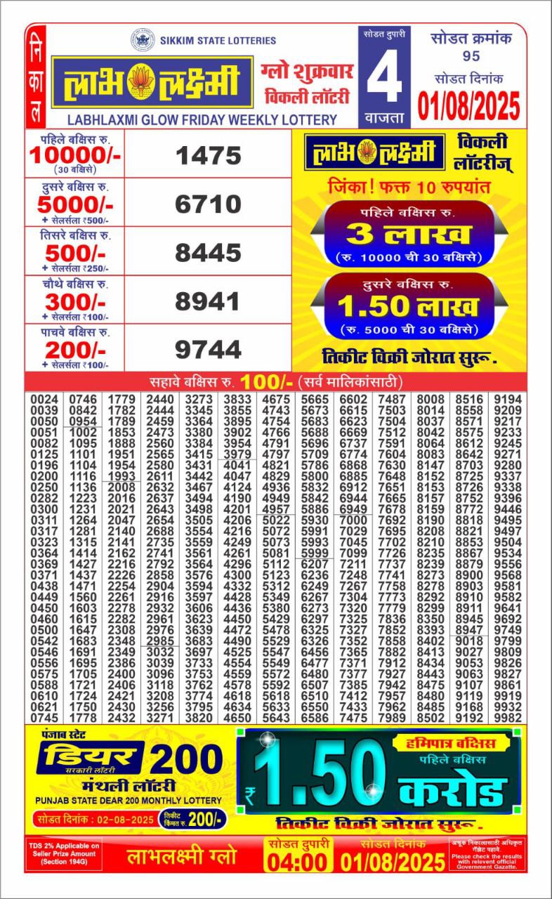 Labhlaxmi Glow Friday Weekly Lottery 4 PM Result 01-08-25