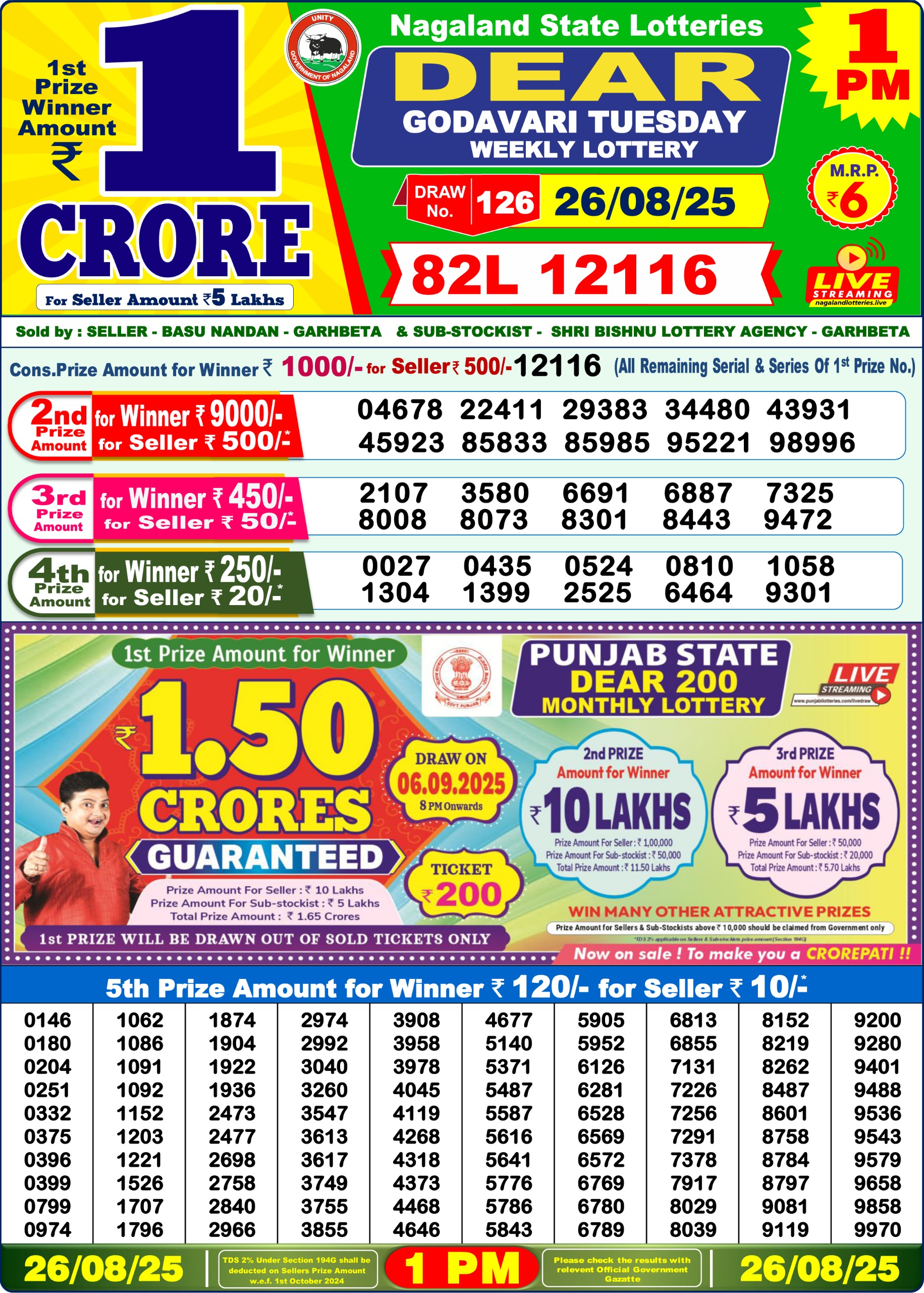 Dear Godavari Tuesday Weekly Lottery 1 PM Result 26-08-25