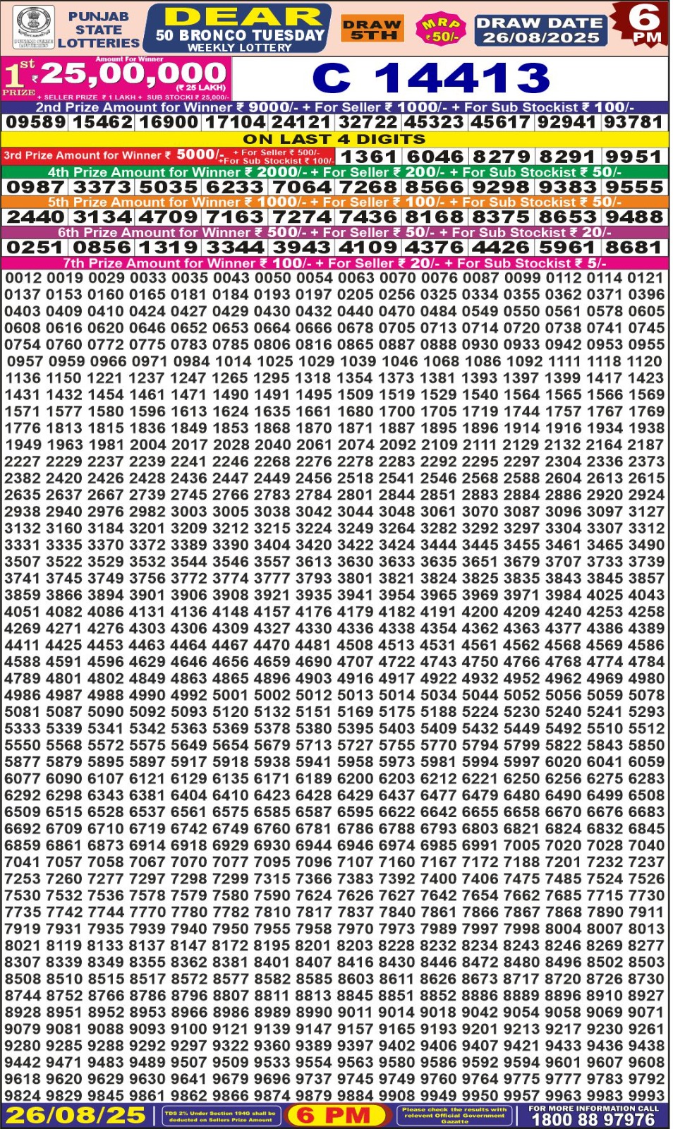 Punjab State Dear 50 Bronco 6 PM Result 26-08-25