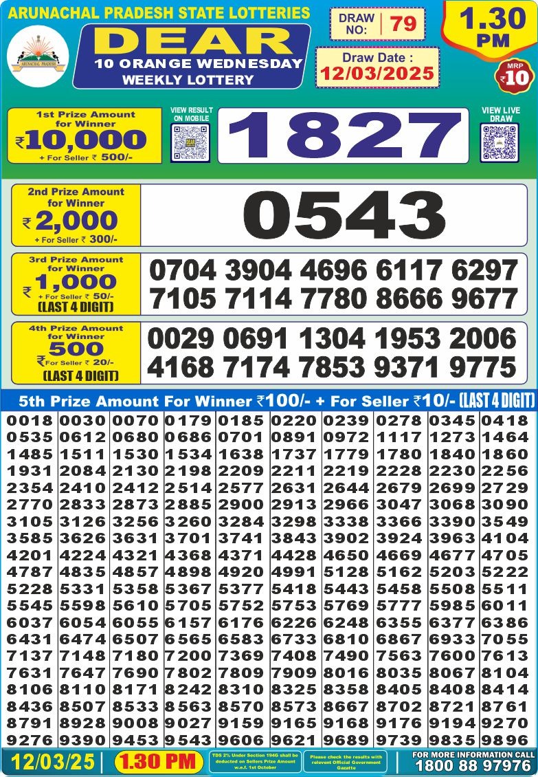 Category: Dear 10 Lottery 1.30 PM Result