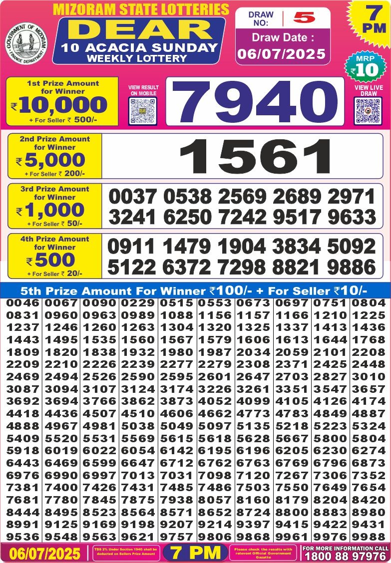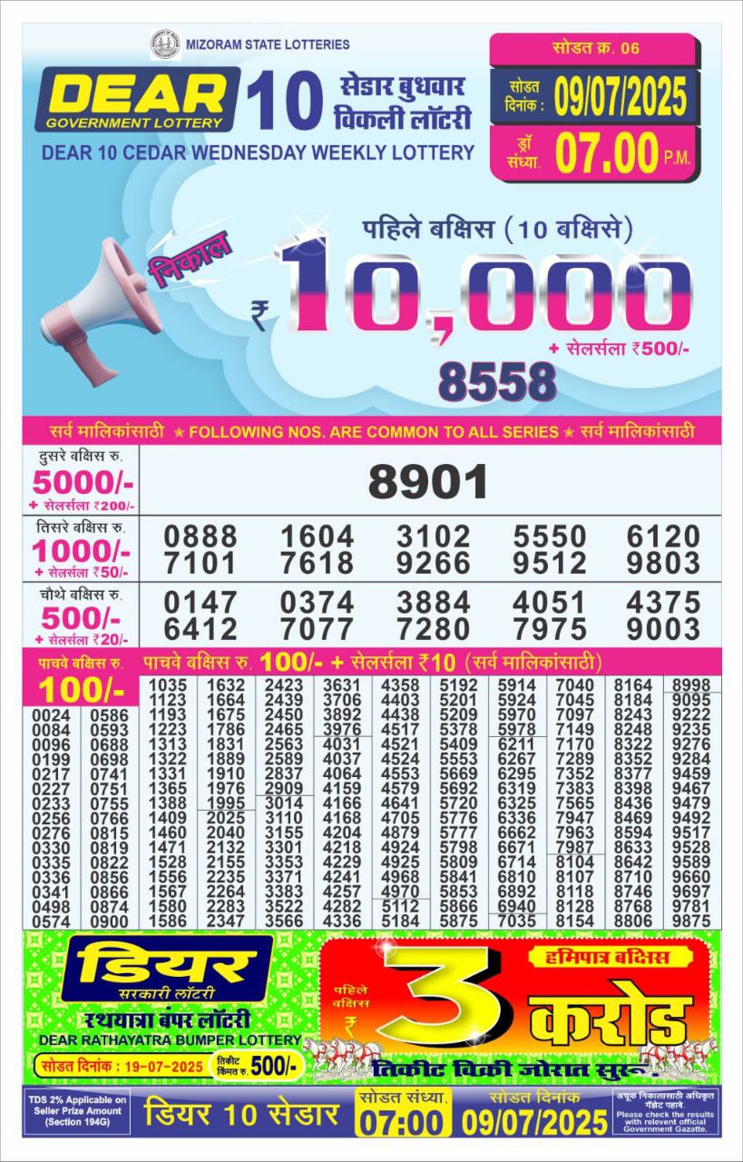 Category: Dear 10 Lottery 7 PM Result