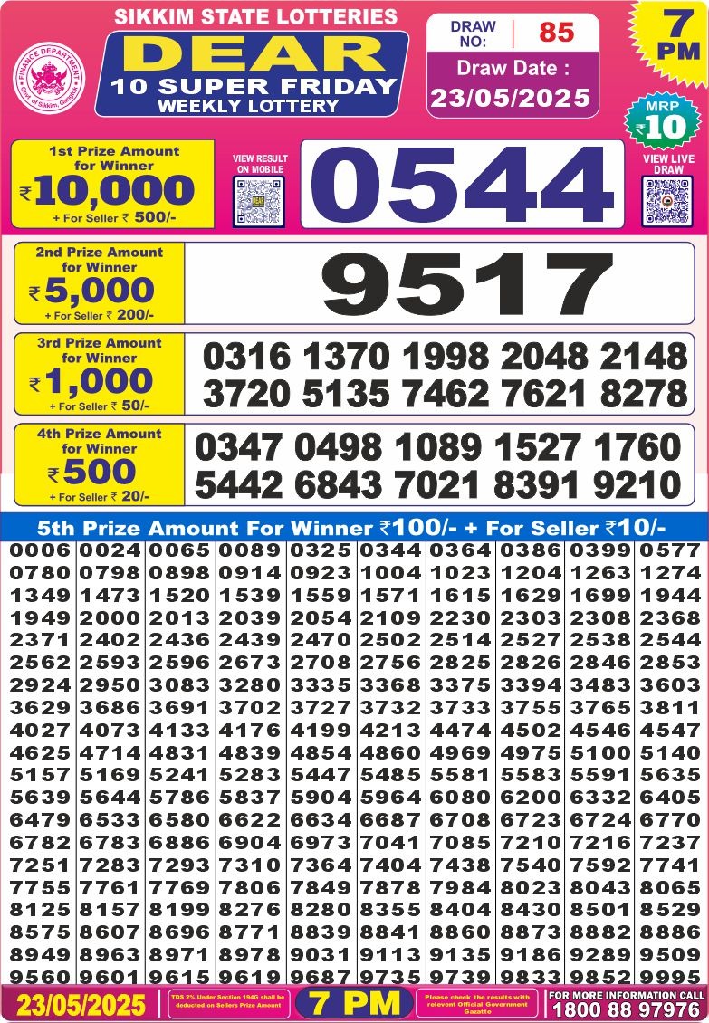 Dear 10 super friday weekly lottery 7 pm result 23-5-25