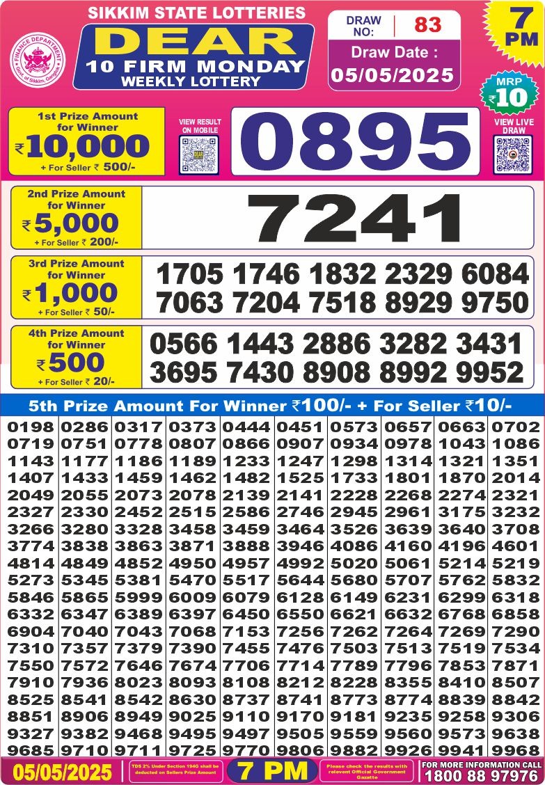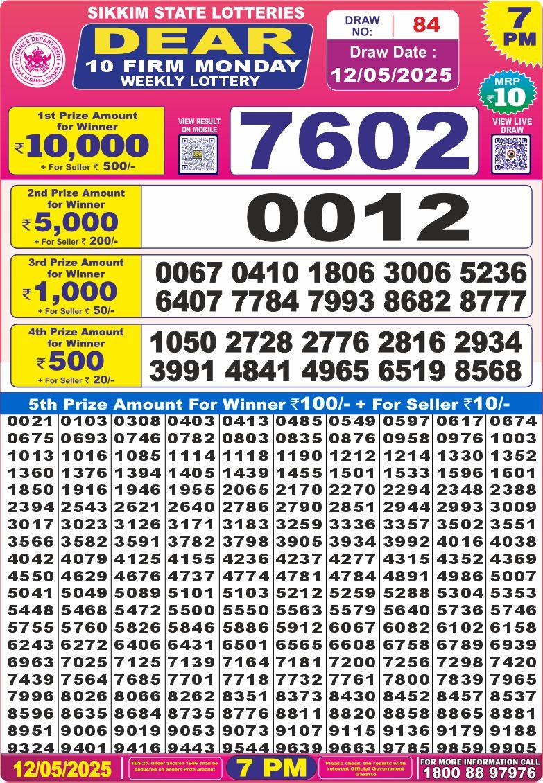 Dear 10 firm monday weekly lottery 7 pm result 5-5-25