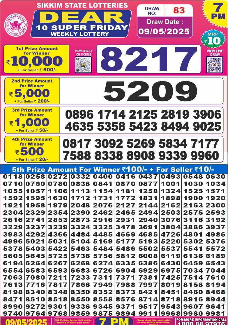 Dear 10 super friday weekly lottery 7 pm result 9-5-25