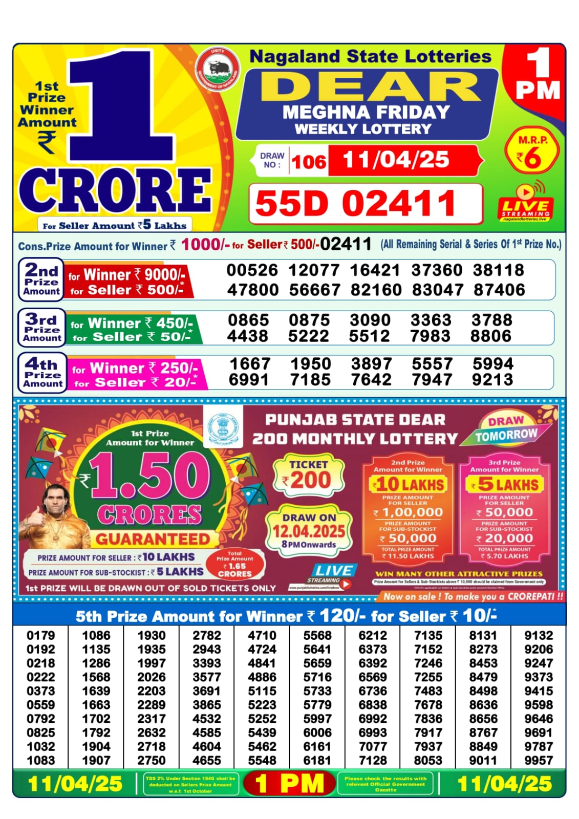 Dear meghna friday weekly lottery 1 pm result 25-4-25