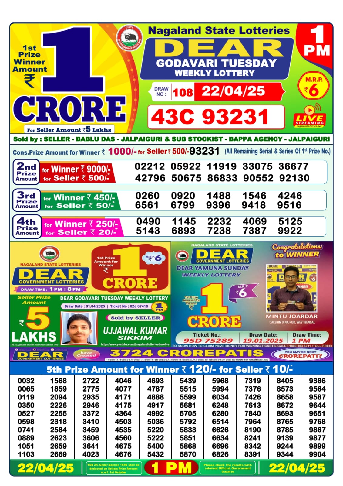 Dear godavari tuesday weekly lottery 1 pm result 22-4-25