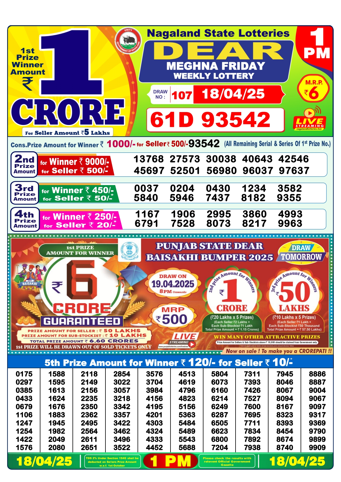 Dear meghna friday weekly lottery 1 pm result 18-4-25