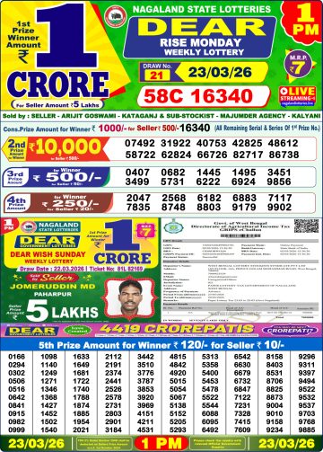 Dear Rise Monday Weekly Lottery 1pm Result 23-03-26