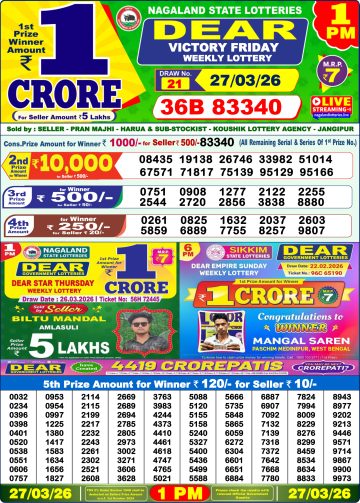 Dear Victory Friday Weekly Lottery 1pm Result 27-03-26