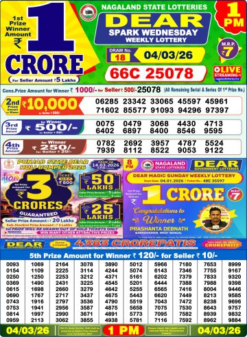 Dear Spark Wednesday Weekly Lottery 1pm Result 04-03-26