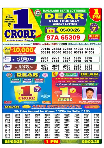 Dear Star Thursday Weekly Lottery 1pm Result 05-03-26