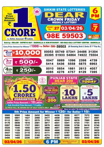 Dear Crown Friday Weekly Lottery 6pm Result 03-04-26