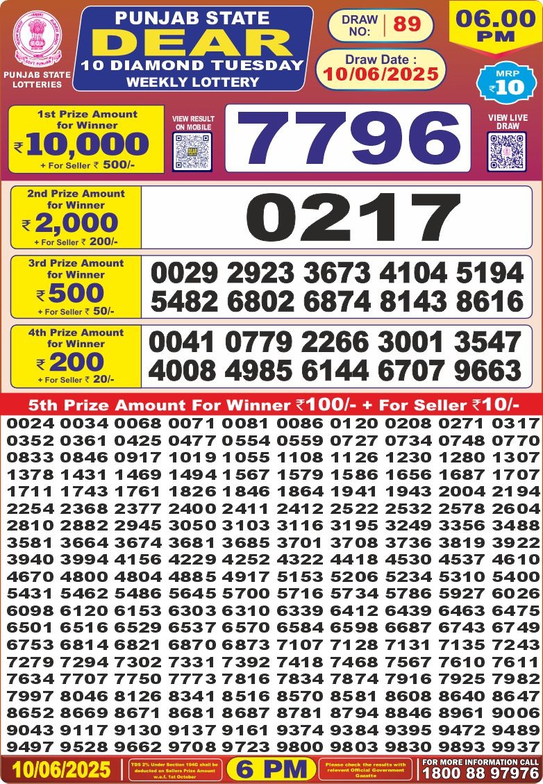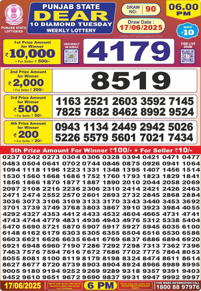 Punjab state dear 10 diamond 6 pm result 17-6-25