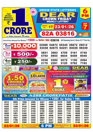 Dear Crown Friday Weekly Lottery 6pm Result 23-01-26