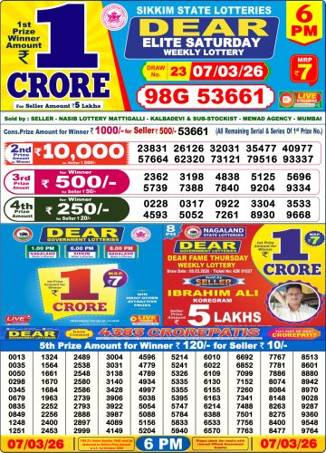 Dear Elite Saturday Weekly Lottery 6pm Result 07-03-26