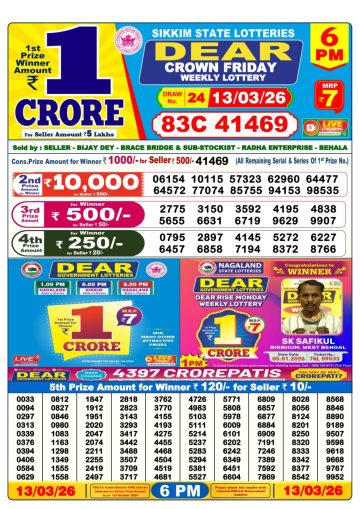 Dear Crown Friday Weekly Lottery 6pm Result 13-03-26