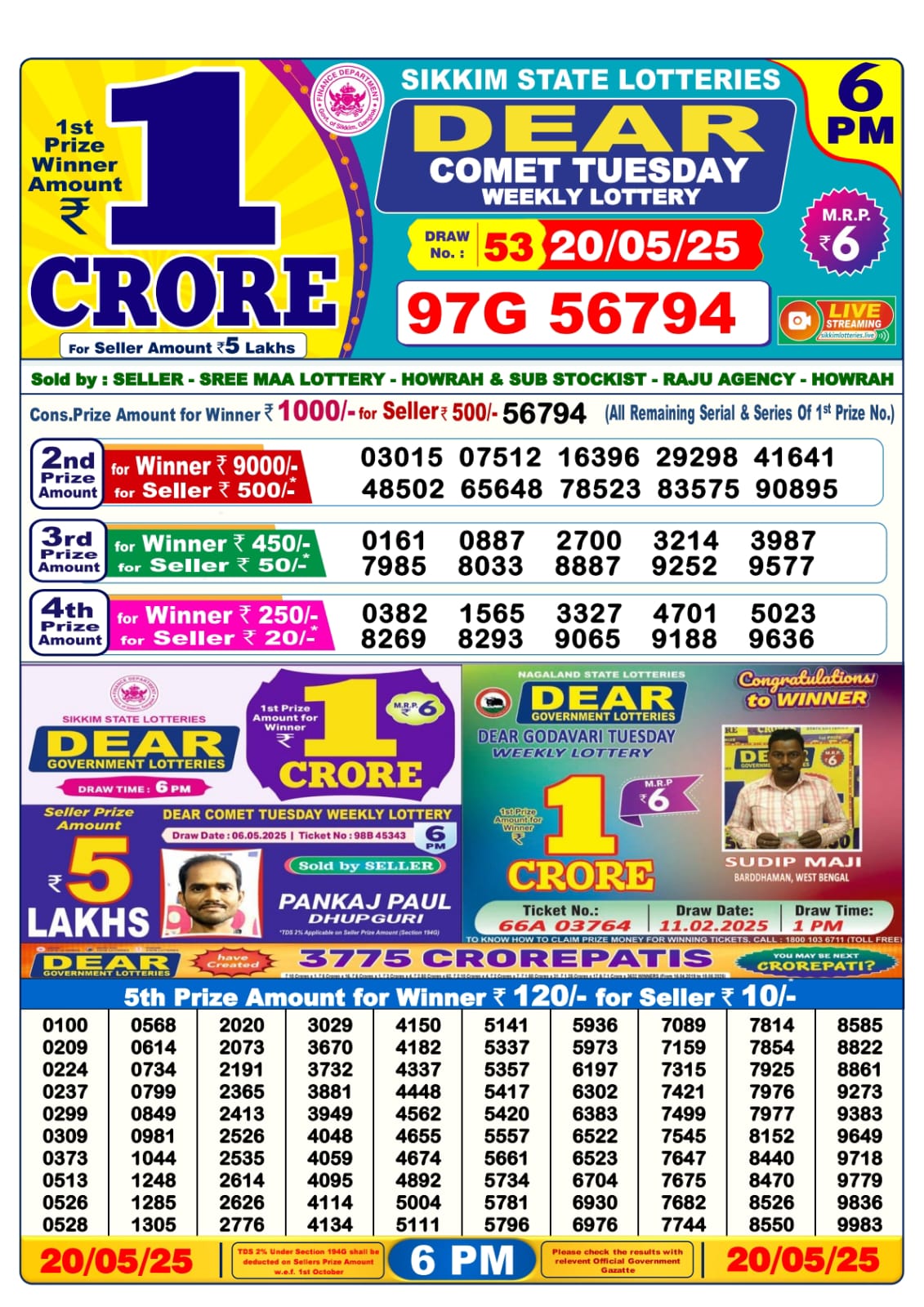 Dear comet tuesday weekly lottery 6 pm result 20-5-25