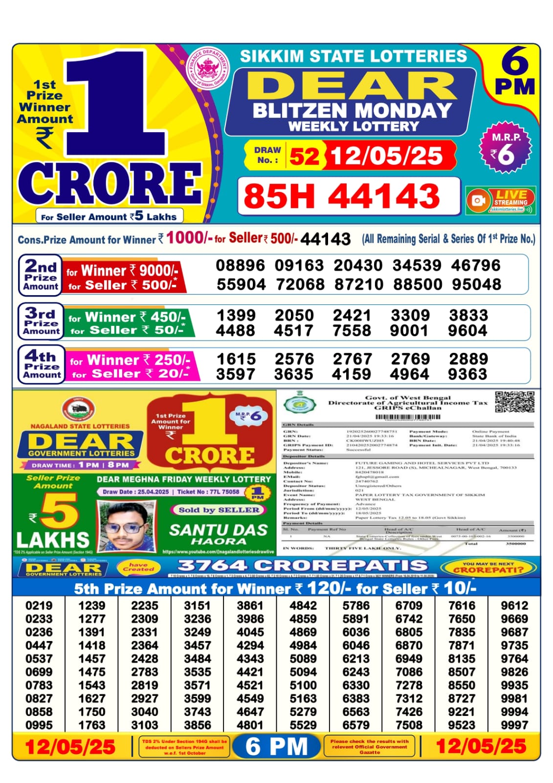Dear blitzen monday weekly lottery 6 pm result 12-5-25