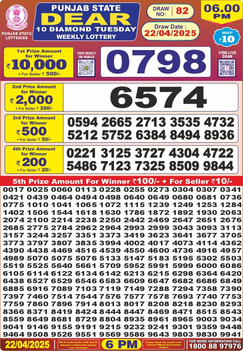 Punjab state dear 10 diamond 6 pm result 22-4-25