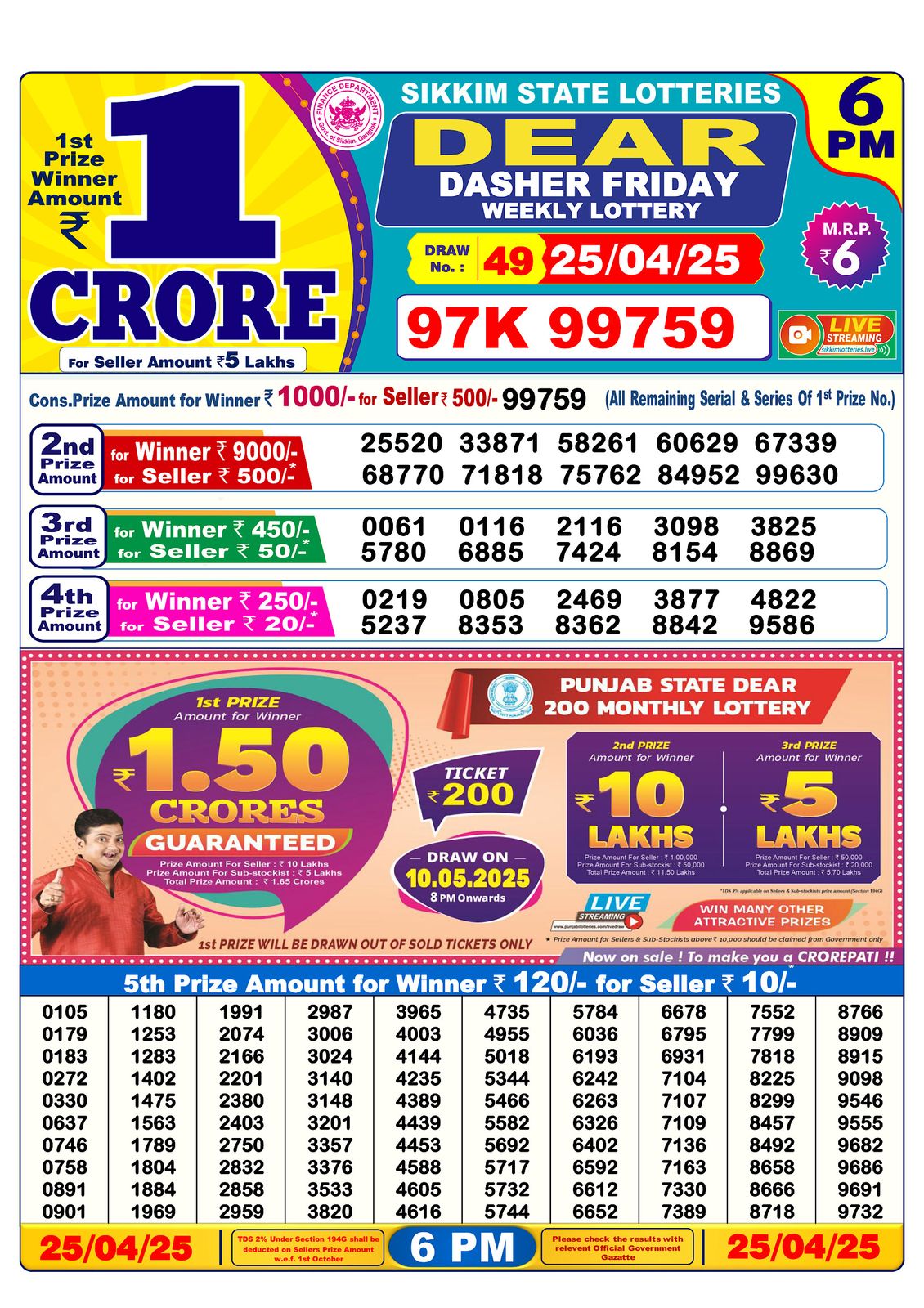 Dear dasher friday weekly lottery 6 pm result 25-4-25