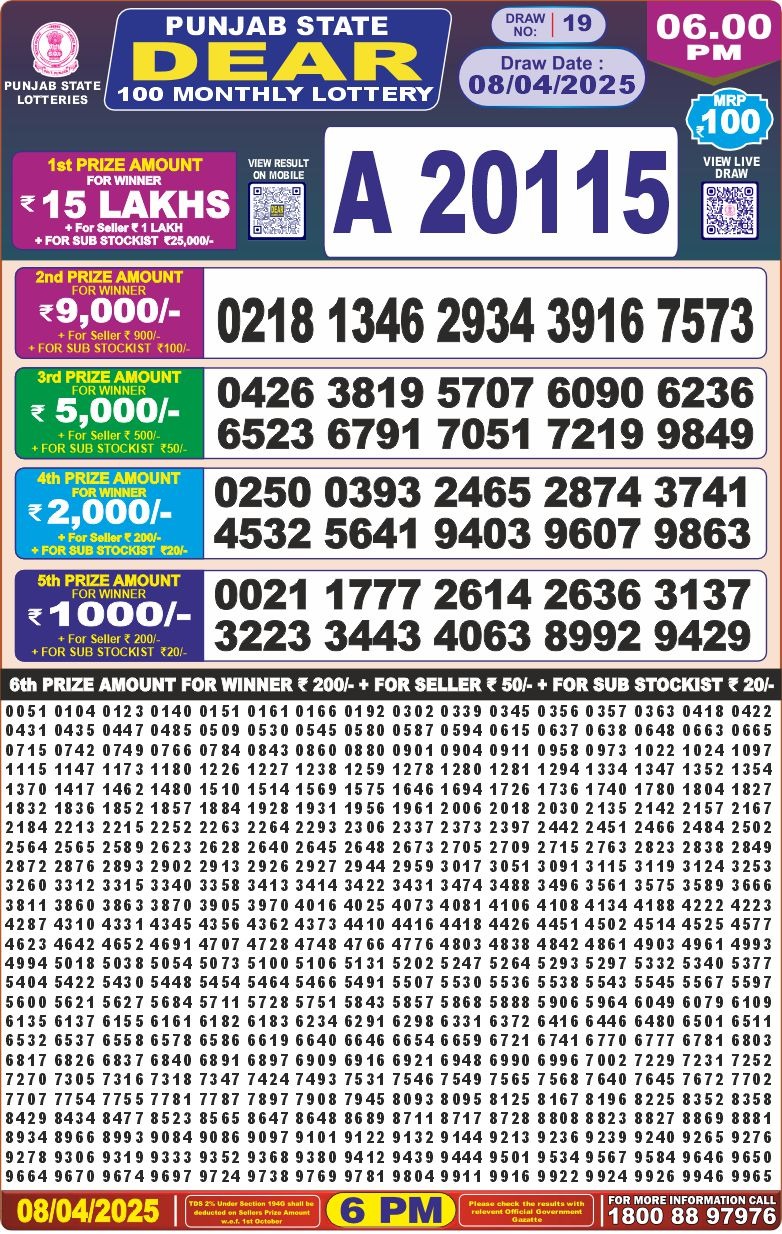 Punjab state dear monthly 100 result 8-4-25