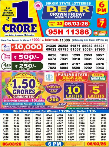Dear Crown Friday Weekly Lottery 6pm Result 06-03-26