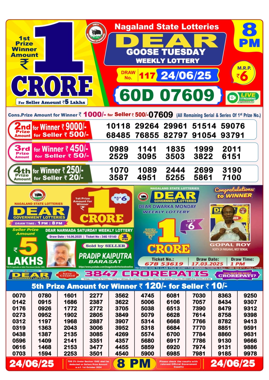 Dear goose tuesday weekly lottery 8 pm result 24-6-25