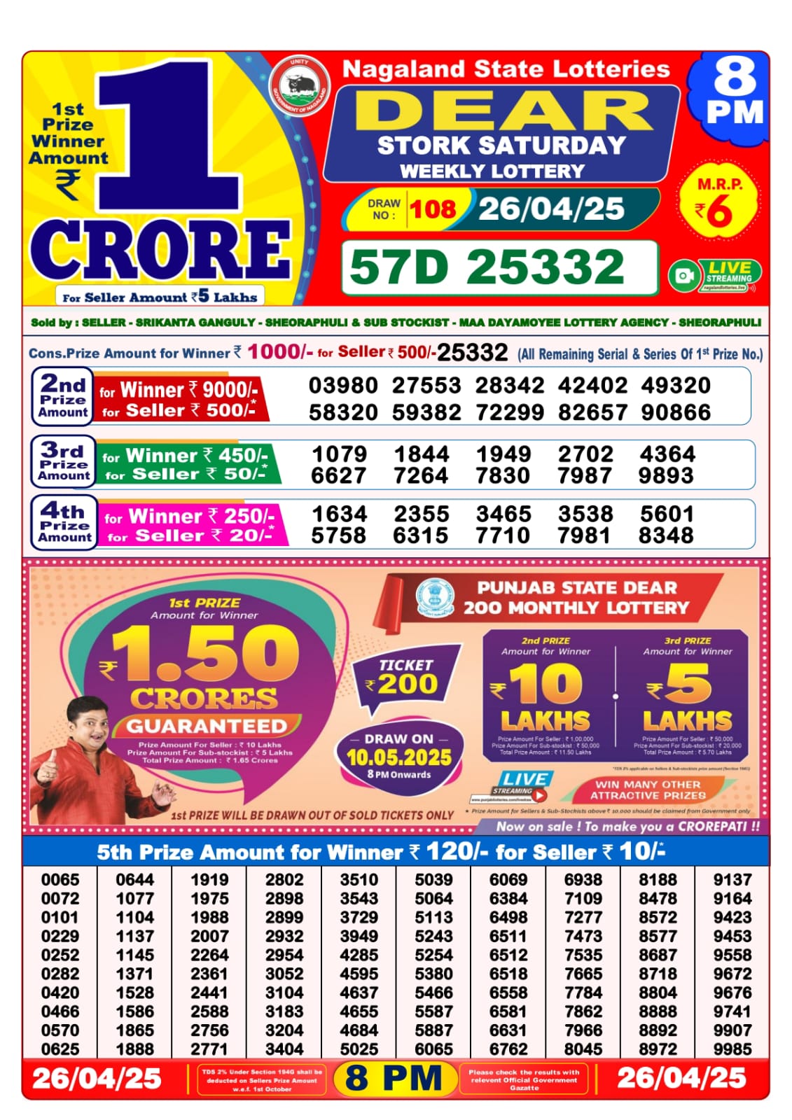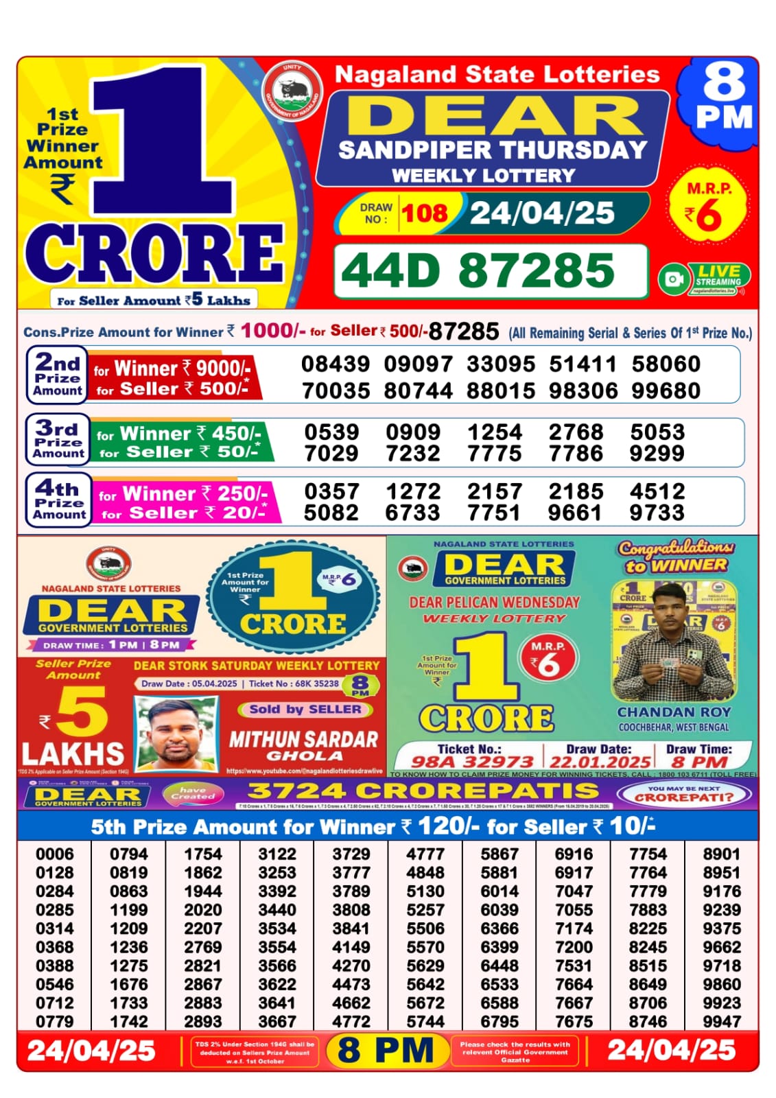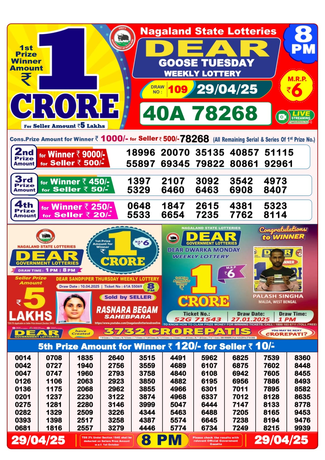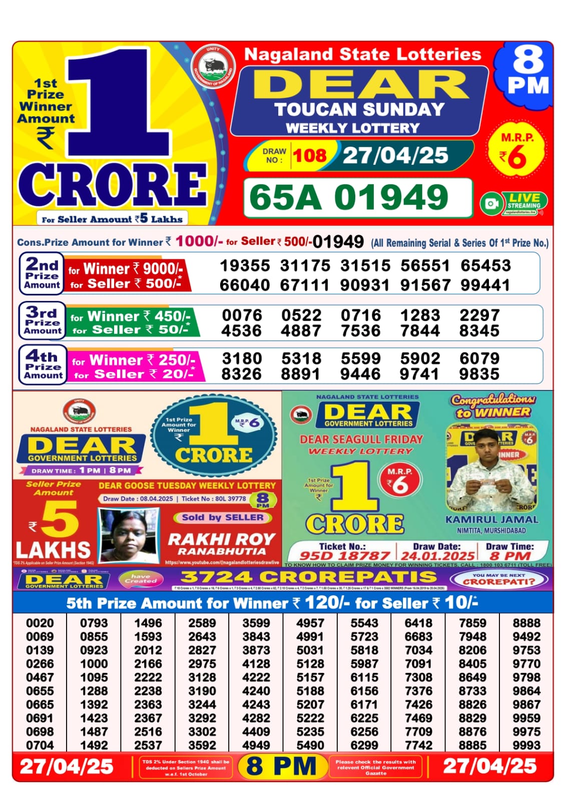 Dear seagull friday weekly lottery 8 pm result 25-4-25