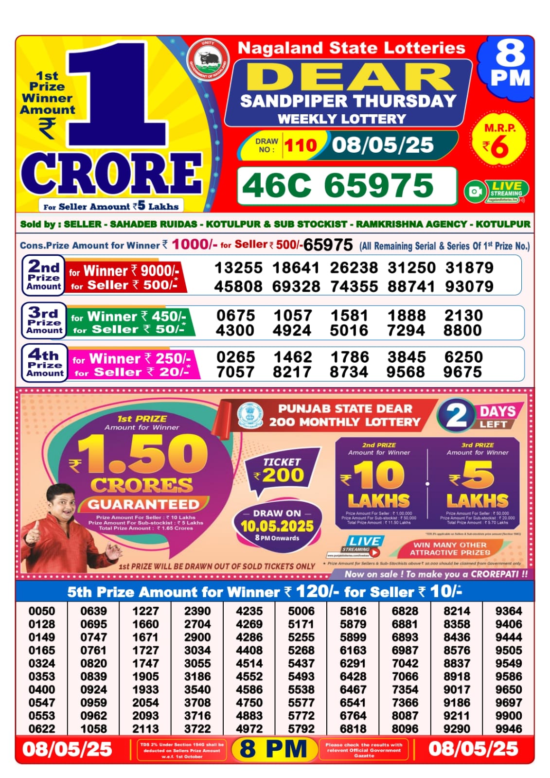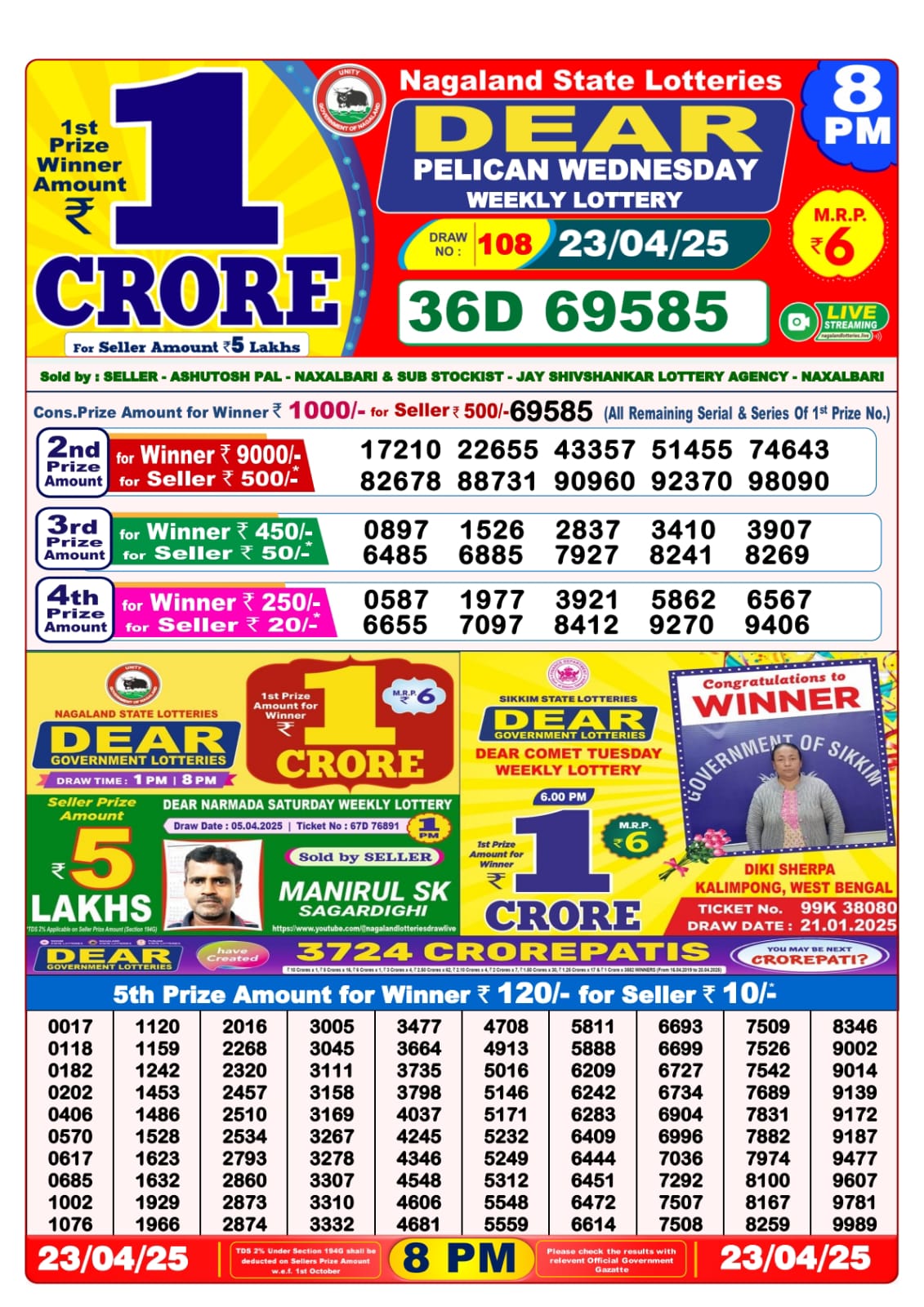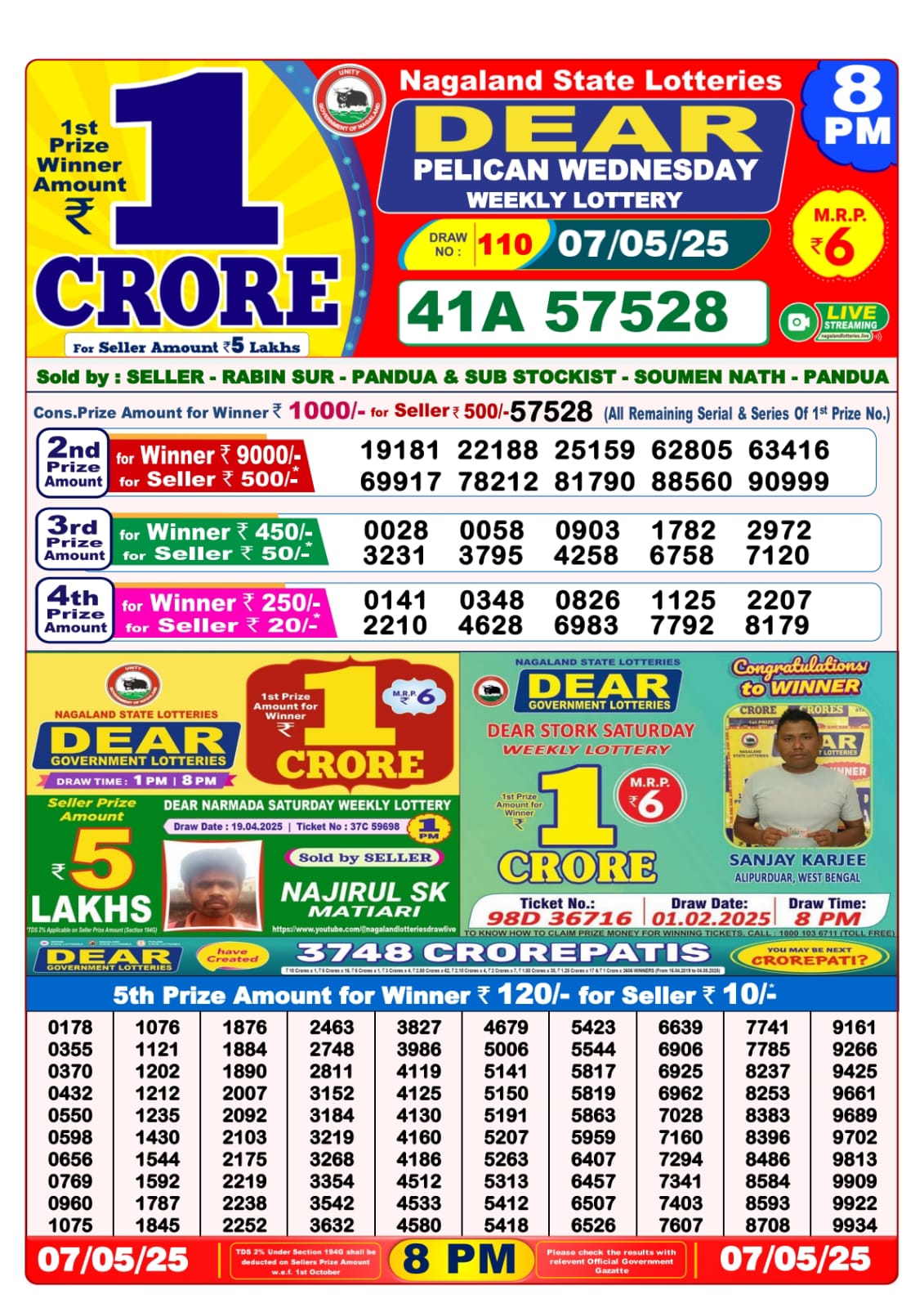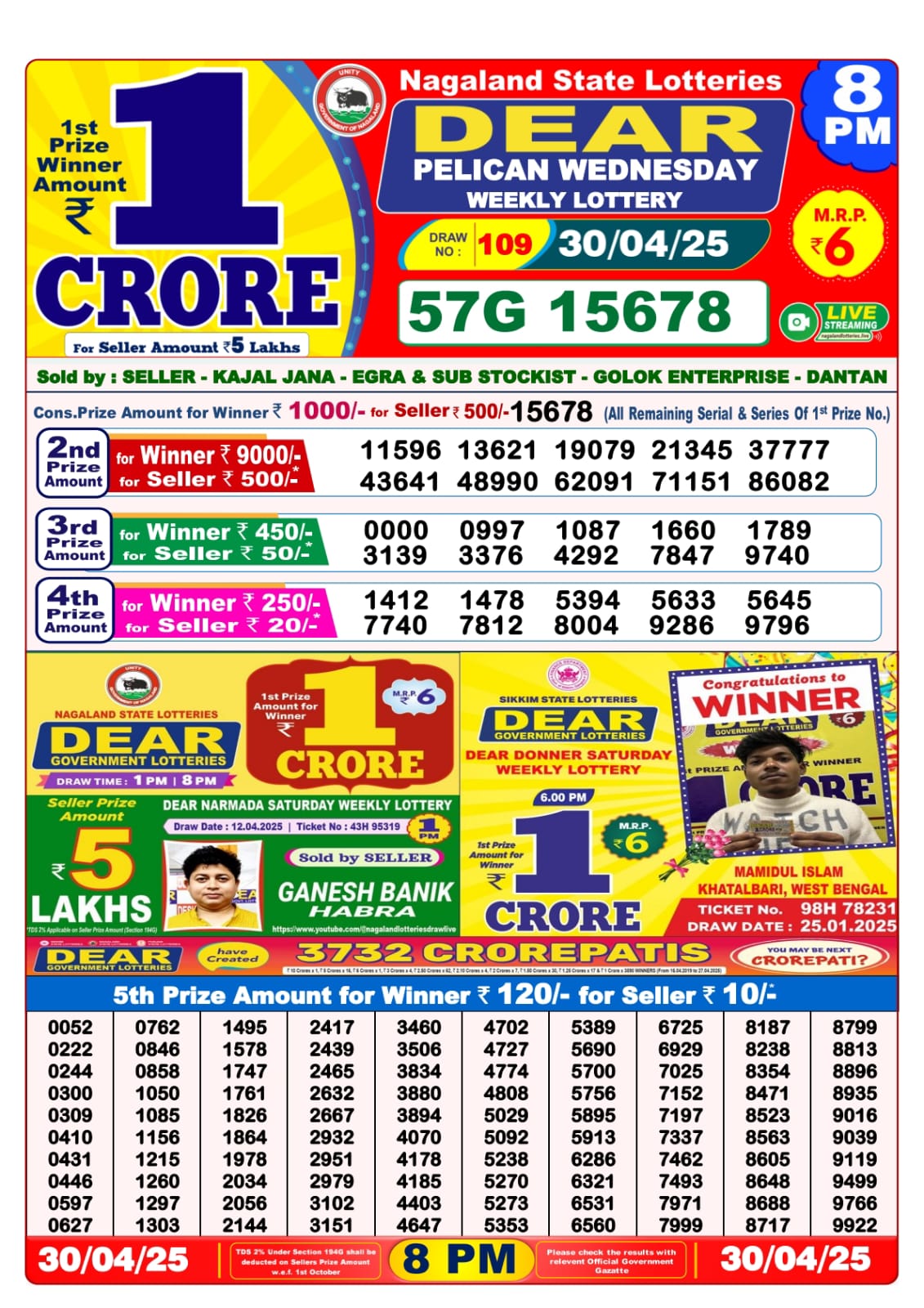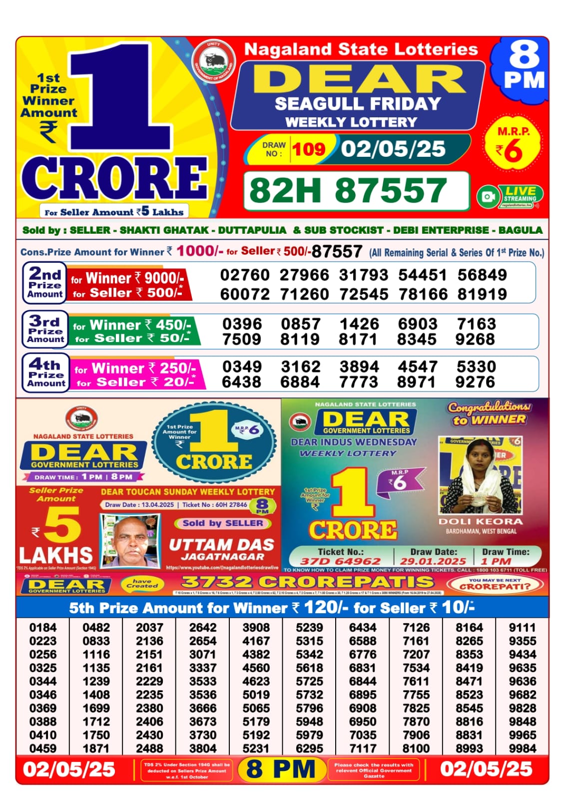 Dear seagull friday weekly lottery 8 pm result 25-4-25