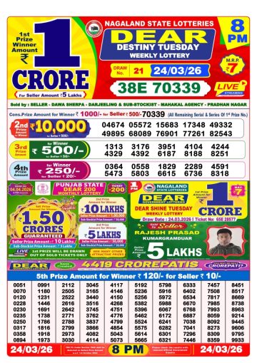 Dear Destiny Tuesday Weekly Lottery 8pm Result 24-03-26