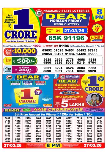 Dear Horizon Friday Weekly Lottery 8pm Result 27-03-26