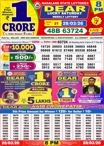 Dear Lucky Saturday Weekly Lottery 8pm Result 21-03-26