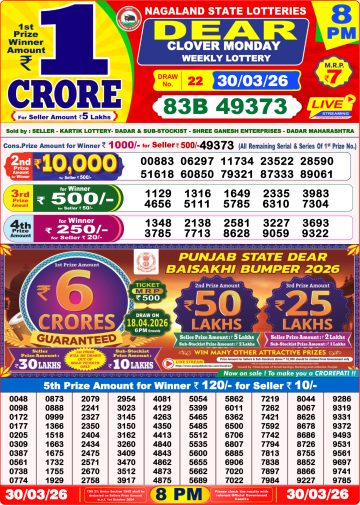 Dear Clover Monday Weekly Lottery 8pm Result 23-03-26