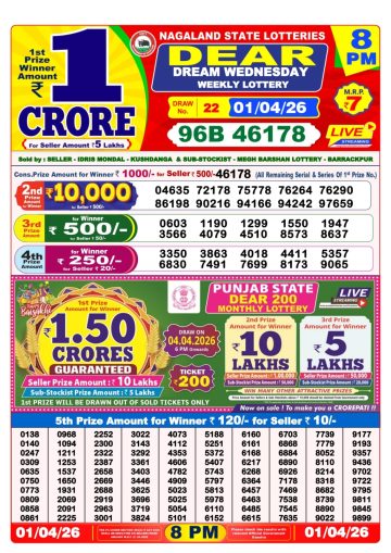 Dear Dream Wednesday Weekly Lottery 8pm Result 01-04-26