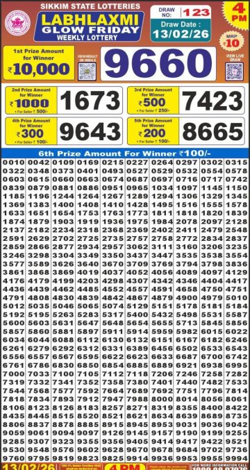 Labh Laxmi Glow Friday Weekly Lottery 4pm Result 13-02-26
